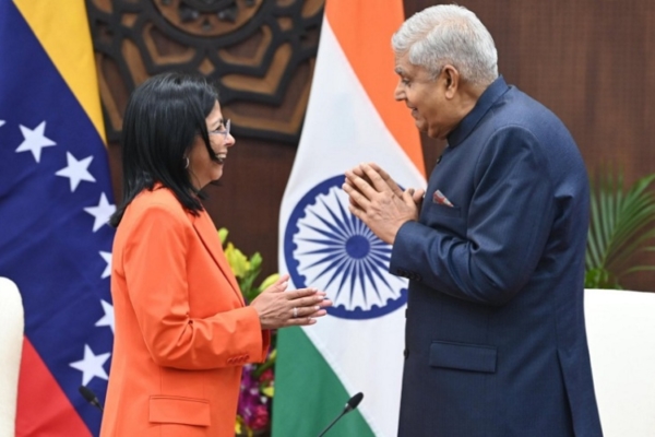 La Vicepresidenta Ejecutiva de la República Bolivariana de Venezuela Delcy Rodríguez, se reunió con su homólogo de La India, Jagdeep Dhankhar para abarcar temas de fortalecimiento en las relaciones bilaterales entre ambas naciones.